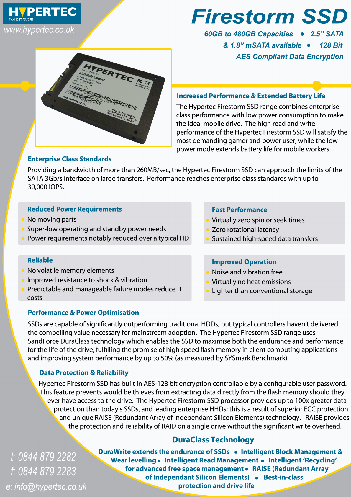Consulte online ou descarregue Ficha Técnica para Unidades de armazenamento de estado sólido Hypertec SSD2120SF1200SA2. Hypertec 60GB 2.5" Firestorm Manual do Utilizador